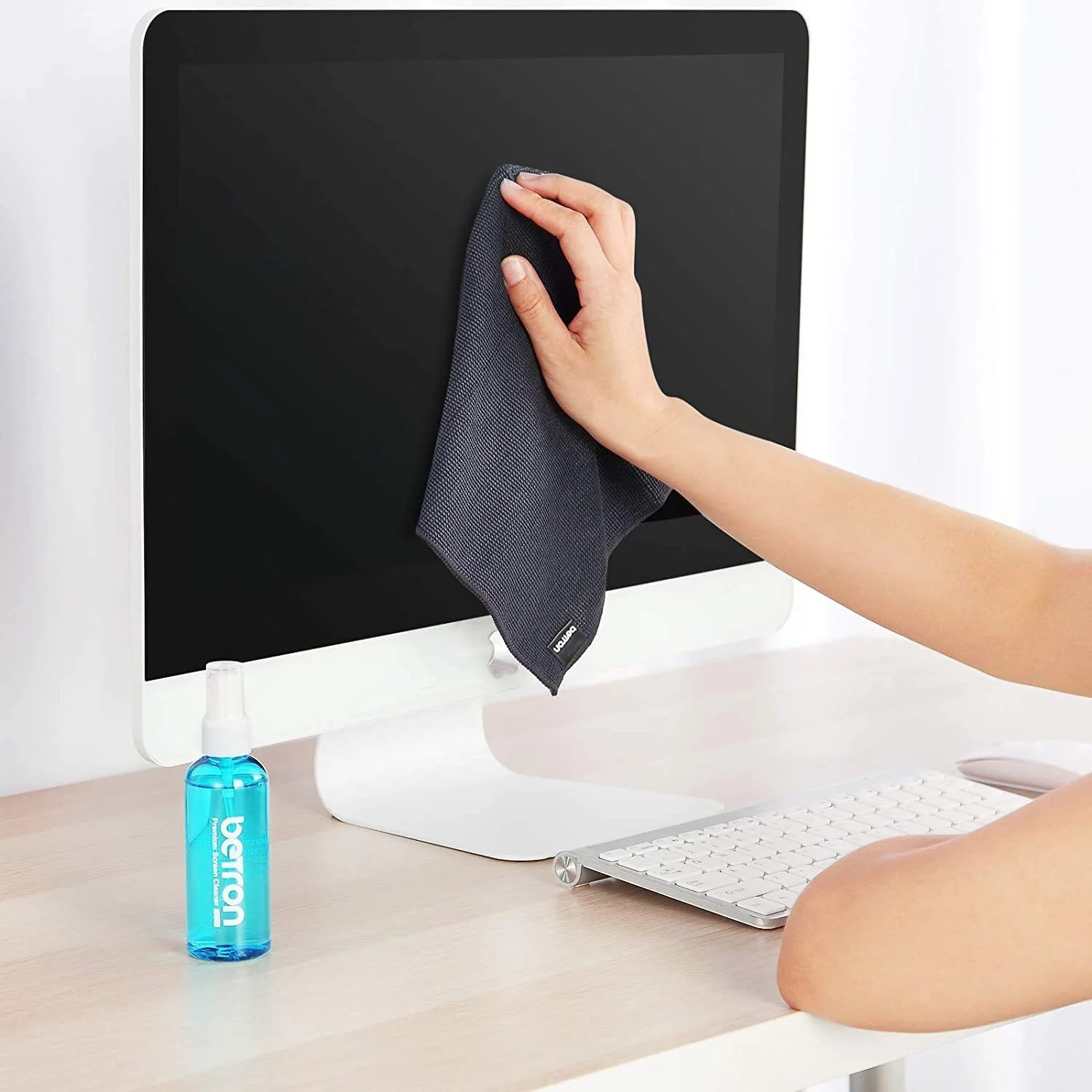 - The screen cleaning kit comes with an ultra-soft microfiber screen cleaning cloth. It is gentle on all screens and devices. The high-quality fabric removes dust, and fingerprints without leaving scuffs and scratches or cleaning solution residue.